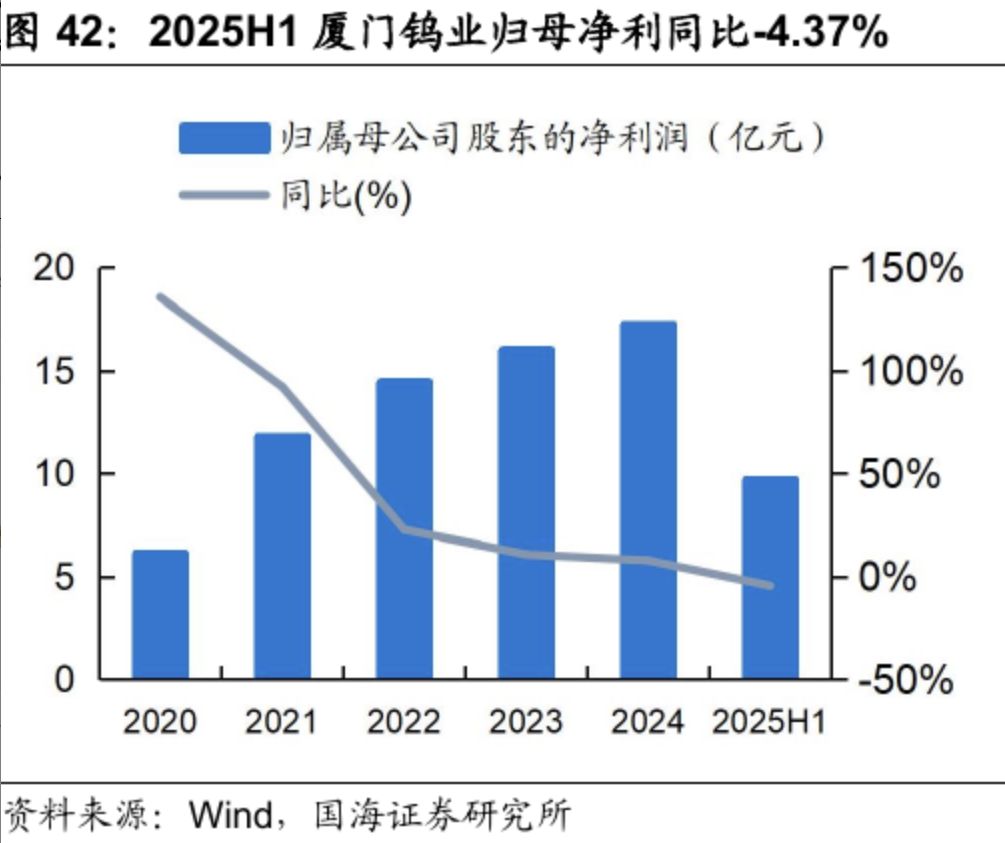 2025年上半年,公司实现营收191.78亿元,同比增加11.75%;利润总额16.9亿元,同比减少10.31%;实现归母净利润9.72亿元,同比减少4.41%;实现扣非归母净利润9.22亿元,同比增加7.45%。利润总额同比下降主要因上年同期公司完成成都滕王阁地产与成都滕王阁物业股权处置及金龙稀土冶炼分离业务处置,确认投资收益1.92亿元,本期无该事项;报告期内权属矿山公司洛阳豫鹭补缴从尾矿资源综合回收利用的钨精矿资源税事项0.63亿元;剔除上述影响,公司利润总额同比增长3.58%,归属于上市公司股东的净利润同比增长7.70%。