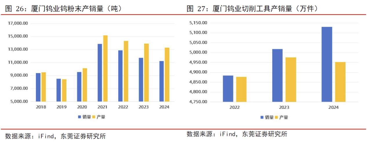 钨钼业务。公司具有前端钨矿山采选,中端钨钼冶炼及钨钼粉末生产、后端硬质合金、钨钼丝材制品和切削刀具等深加工应用及回收的完整产业链。公司直接和间接控制的钨矿山金属储量近200万吨,占全国30%左右;公司在硬质合金领域已跻身国际先进水平,硬质合金出口量占全国30%以上。切削工具定位中高端,产品覆盖3C、航空航天等领域,海外市场占比提升。光伏钨丝方面,目前公司主流产品线径已达30μ以下,公司自主研发的光伏用高强度钨丝渗透率超50%,2024年销量达1070亿米。未来司将持续推进产品细线化,推出强度更高、性能更好的钨丝产品,满足客户更多样的定制化需求。此外,公司积极布局核聚变装置用钨材等高端应用,形成技术壁垒与市场竞争力。