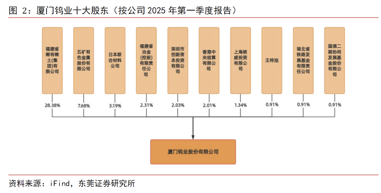 截至2025年6月,公司控股股东为福建省稀有稀土(集团)有限公司,持股比例28.38%,实际控制人为福建省国资委。其他重要股东包括五矿有色金属股份有限公司(7.68%)、日本联合材料公司(3.19%)等产业资本。