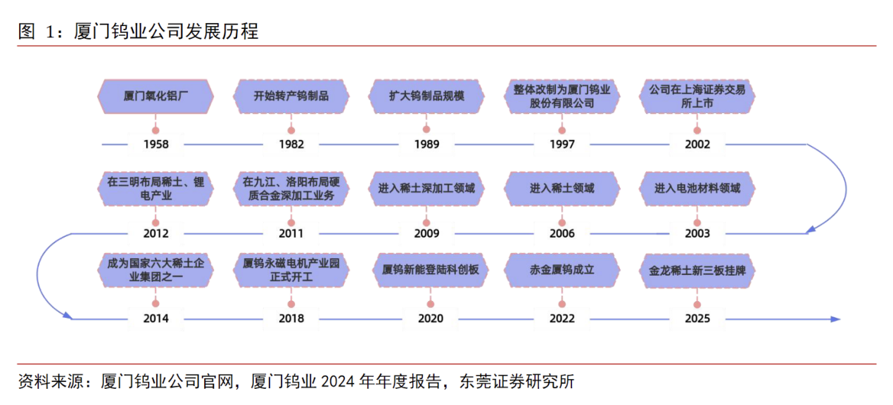 2018年厦钨永磁电机产业园开工建设,标志稀土业务向高端制造领域延伸。2020年子公司厦钨新能登陆科创板,2025年子公司金龙稀土于新三板挂牌。