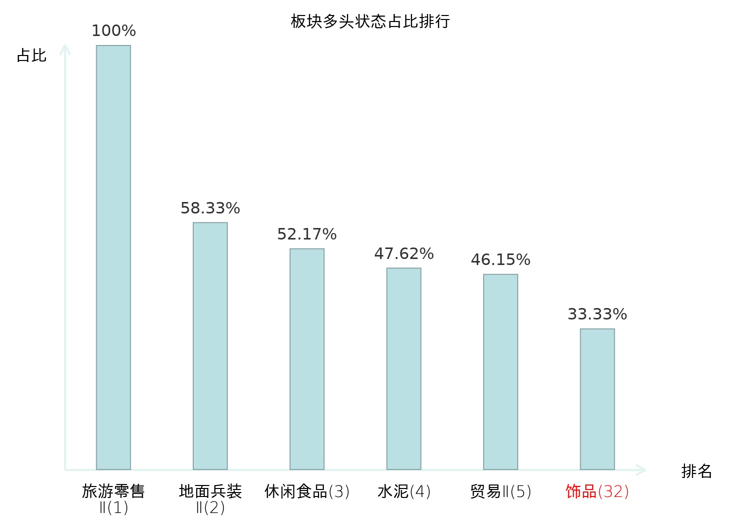 全市场所有行业板块中主力多头状态占比排名中,旅游零售Ⅱ板块位居第一。焦炭Ⅱ板块名次提升最快,较昨日上升82位。