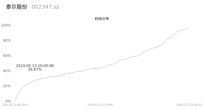 002347泰尔股份2024年05月13日成交14.50万手,成交金额6387.06万元,相较昨日放量2.11万手,换手率2.94%,成交清淡。