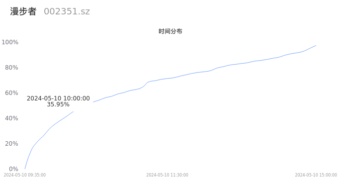 首先我们来看当日成交的时间分布。将今日交易时间按照5分钟的时间间隔进行切片,并绘制分布直方图进行观察。可以发现,10点之前的成交量占全天成交量的35.95%,这说明,该股票活跃时段换手火爆,资金热情高涨。