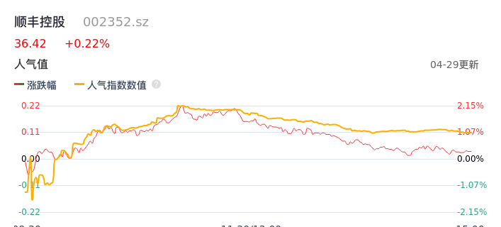 04月29日,顺丰控股收报36.42,股价涨幅0.22%,成交金额10.07亿元,换手率0.56%。