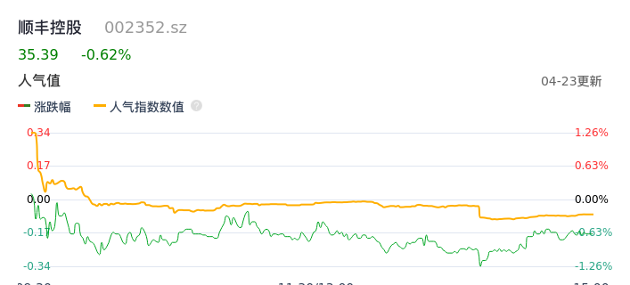 04月23日,顺丰控股收报35.39,股价涨幅-0.62%,成交金额4.88亿元,换手率0.28%。