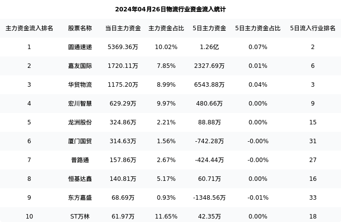 从主力资金流向来看,物流行业今日主力资金流入16.01亿元,在所有申万二级行业中排名:99/131。