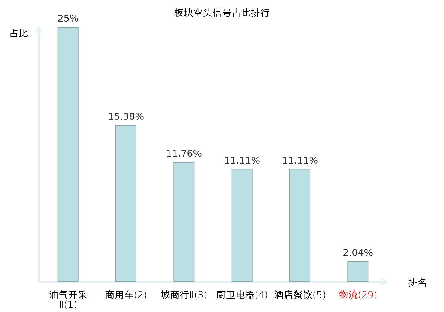 全市场所有行业板块中主力空头信号占比排名中,油气开采Ⅱ板块位居第一。包装印刷板块名次提升最快,较昨日上升101位。