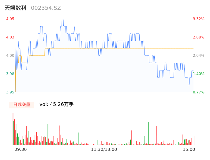 04月23日,天娱数科收报3.98,股价涨幅1.53%,成交金额1.81亿元,换手率2.80%。
