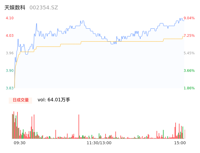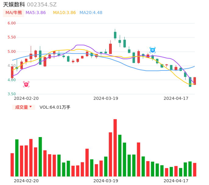 04月17日,天娱数科收报4.09,股价涨幅8.78%,成交金额2.58亿元,换手率3.96%。