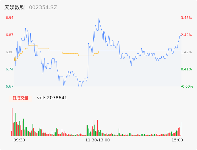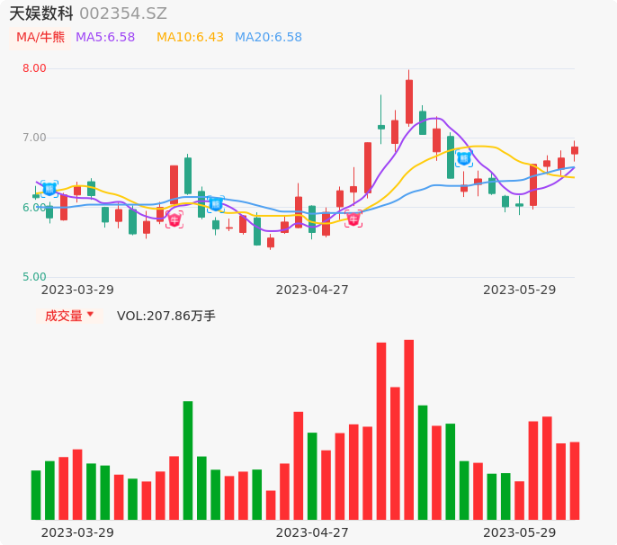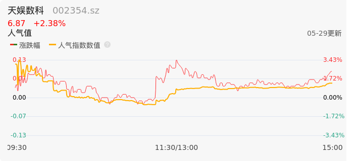 05月29日,天娱数科收报6.87,股价涨幅2.38%,成交金额14.16亿元,换手率12.85%。