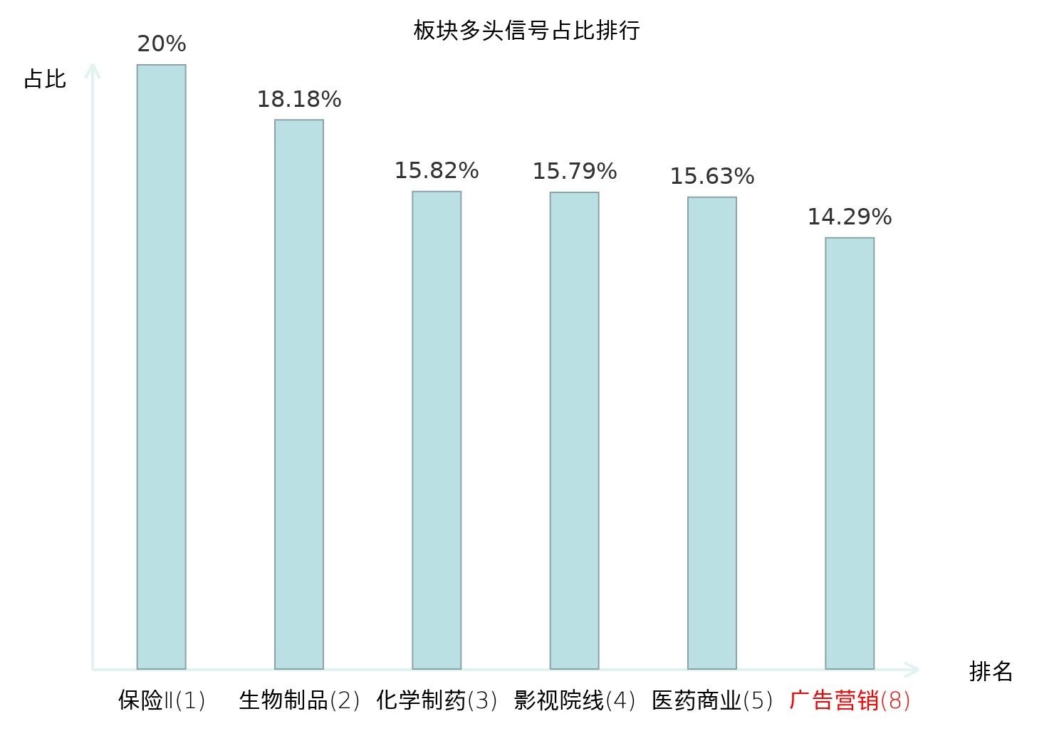 全市场所有行业板块中主力多头信号占比排名中,保险Ⅱ板块位居第一。保险Ⅱ板块名次提升最快,较昨日上升125位。