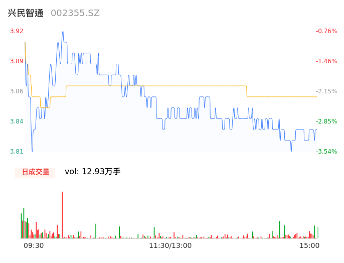 04月22日,兴民智通收报3.82,股价涨幅-3.29%,成交金额4986.50万元,换手率2.10%。