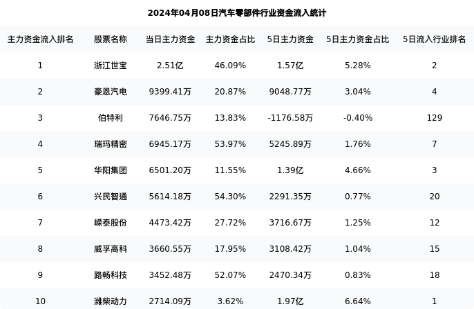 从主力资金流向来看,汽车零部件行业今日主力资金流入80.90亿元,在所有申万二级行业中排名:17/131。