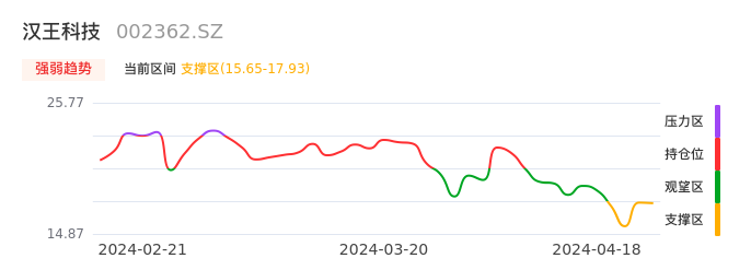 04月18日,汉王科技收报17.78,股价涨幅-1.22%,成交金额1.50亿元,换手率4.06%。