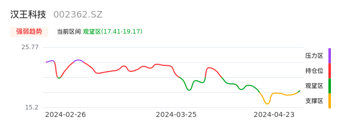 04月23日,汉王科技收报17.63,股价涨幅2.14%,成交金额1.23亿元,换手率3.39%。