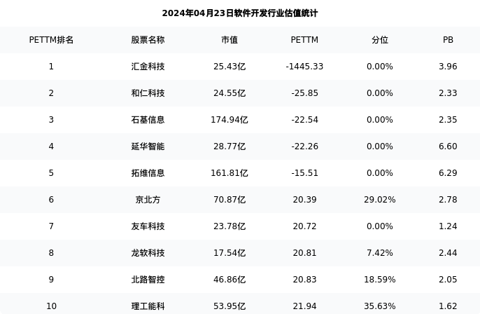 汉王科技最新报告期数据为年报,下表汇总了软件开发行业内市值靠前的公司年报主要经营数据