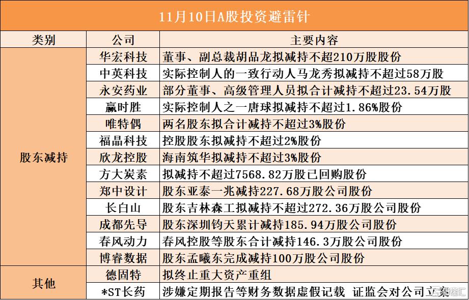 11月10日A股投资避雷针︱德固特:拟终止重大资产重组;*ST长药:涉嫌定期报告等财务数据虚假记载 证监会对公司立案