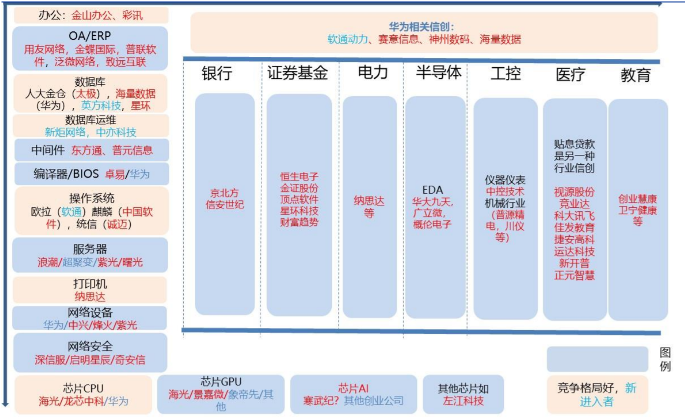 4)CPU:海光信息(产品性能强)、龙芯中科(自主指令集 LoongArch);