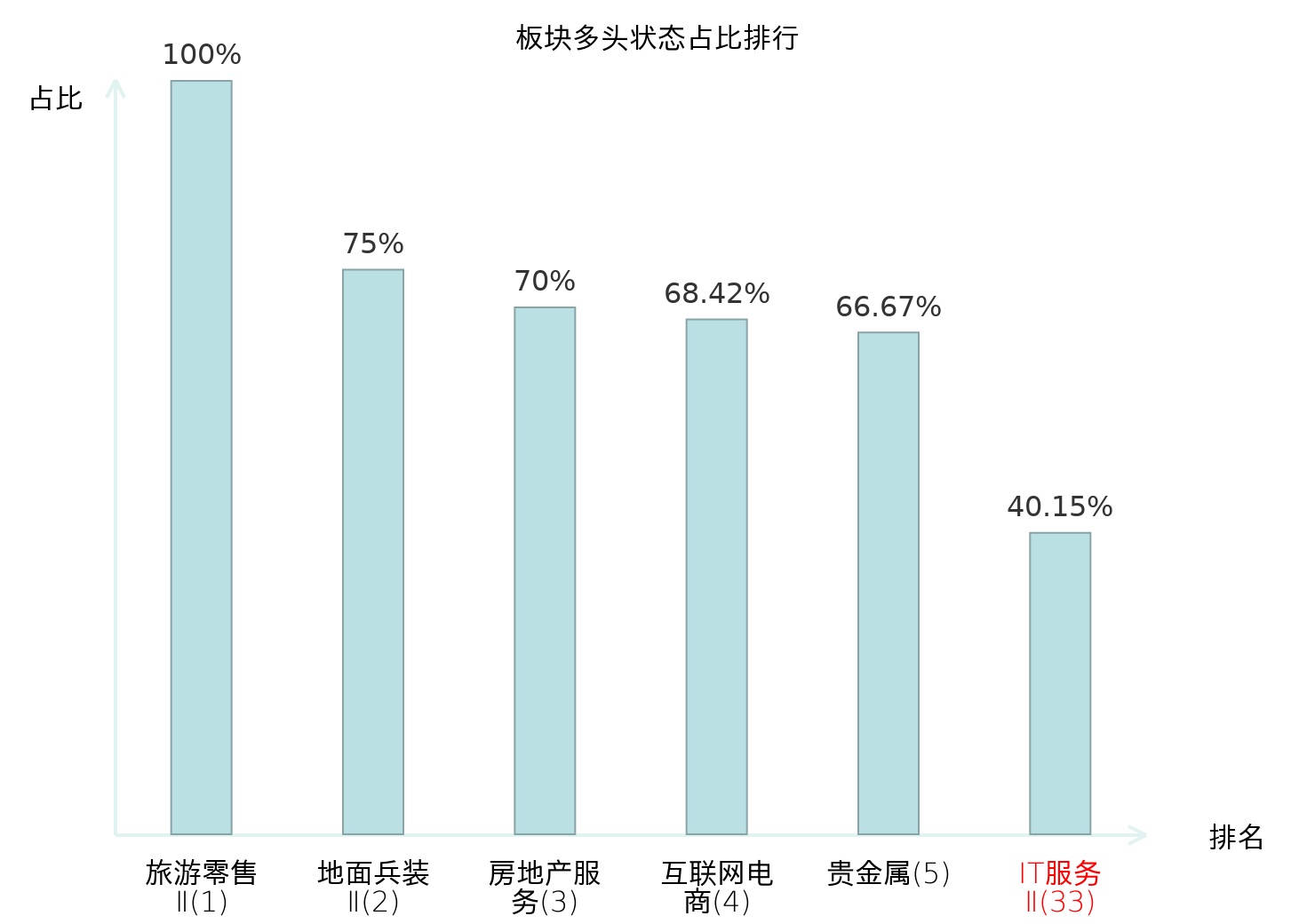 全市场所有行业板块中主力多头状态占比排名中,旅游零售Ⅱ板块位居第一。白色家电板块名次提升最快,较昨日上升65位。
