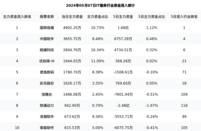 从主力资金流向来看,IT服务行业今日主力资金流入56.10亿元,在所有申万二级行业中排名:127/131。
