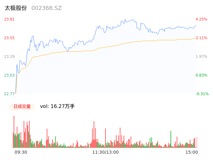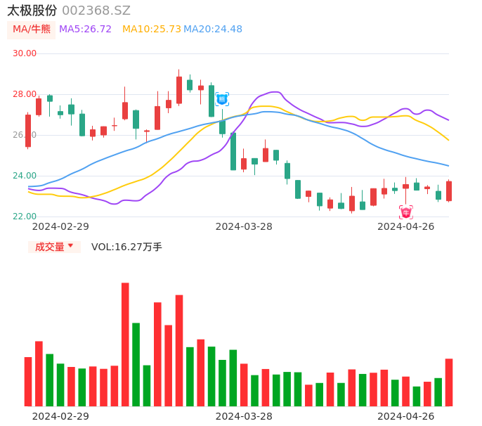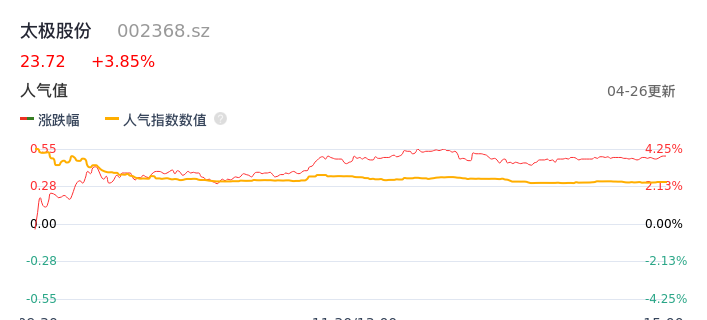 04月26日,太极股份收报23.72,股价涨幅3.85%,成交金额3.83亿元,换手率2.62%。
