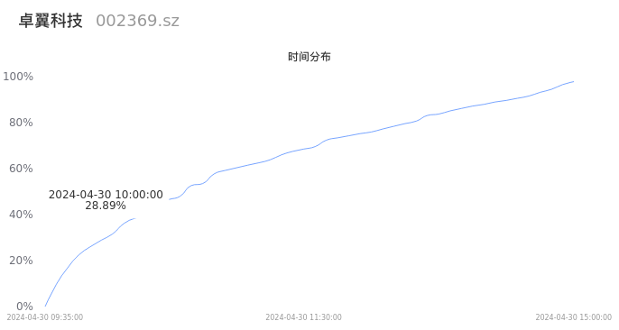根据成交分布分析,该股票当天放量成交,成交清淡。时间上看,早盘前半小时成交量占据当天总成交量的28.89%;价格上看,成交呈现中间峰。成交分布分析主要研究股票成交的分布特性,不具有预测功能,请知悉。