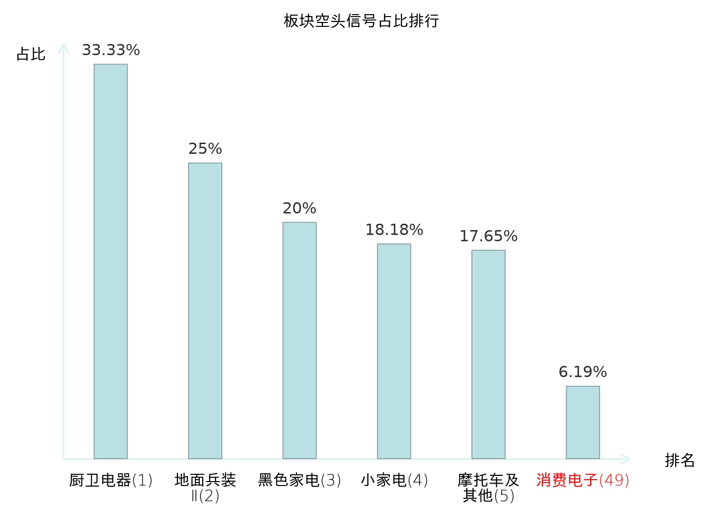 全市场所有行业板块中主力空头信号占比排名中,厨卫电器板块位居第一。服装家纺板块名次提升最快,较昨日上升124位。