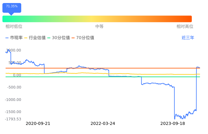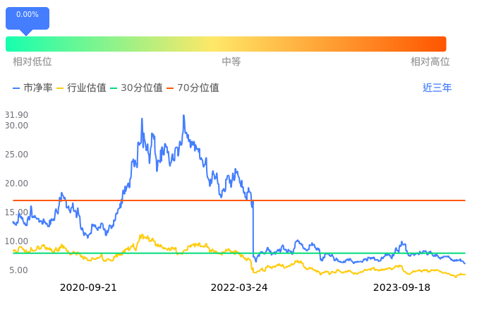 2023年09月18日,北方华创下跌1.47%收于245.48,今日成交金额11.50亿元。下文将从市盈率PETTM、市净率PB、市现率3个角度去分析公司估值情况。