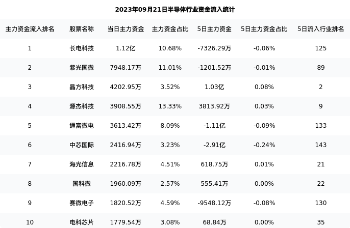 从主力资金流向来看,半导体行业今日主力资金流入45.96亿元,在所有申万二级行业中排名:115/131。