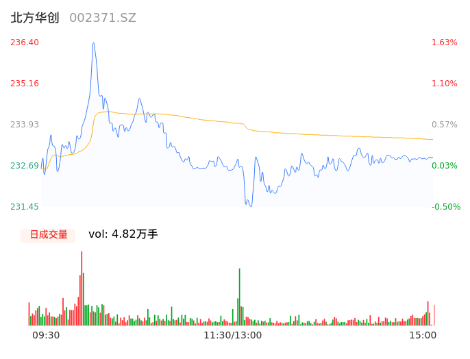 09月27日,北方华创收报232.95,股价涨幅0.15%,成交金额11.25亿元,换手率0.91%。