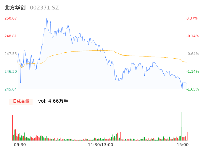 09月18日,北方华创收报245.48,股价涨幅-1.47%,成交金额11.50亿元,换手率0.88%。