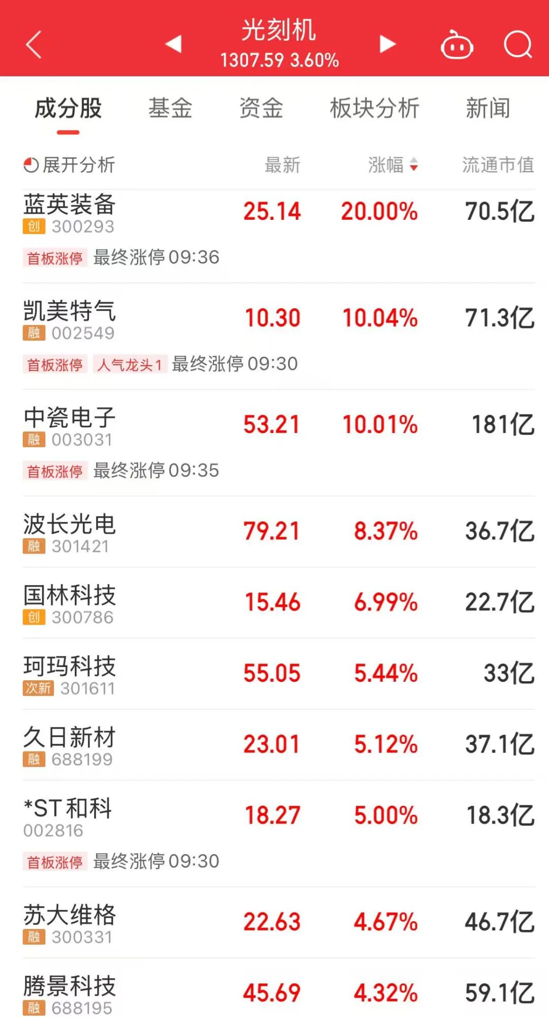 今天上午,科技股走强,半导体产业链领涨,其中,光刻机板块大涨,蓝英装备、凯美特气等个股大涨。AI方面,光模块、Sora概念等板块涨幅居前。另外,华为概念、消费电子概念等板块也都表现活跃。寒武纪、中际旭创、北方华创、紫光国微等龙头股均上涨。