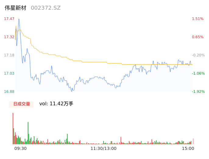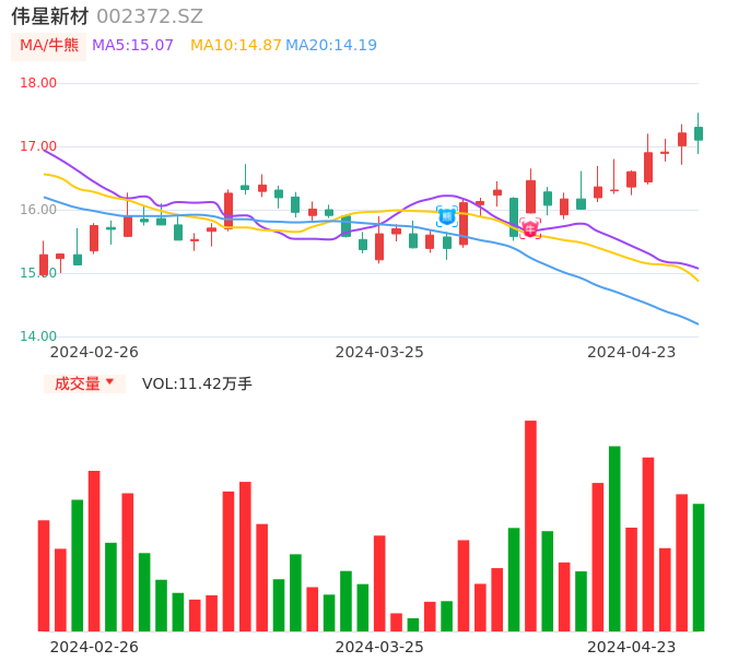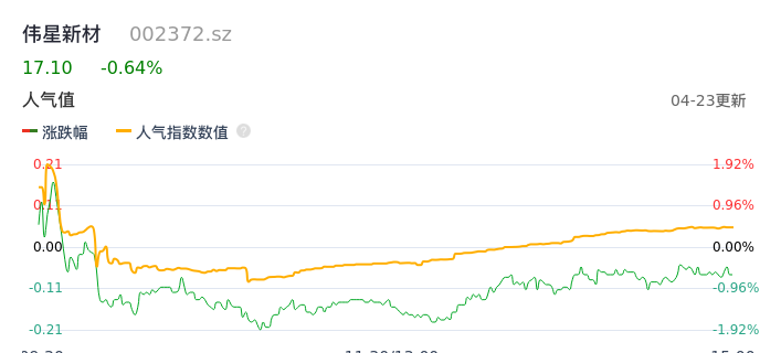 04月23日,伟星新材收报17.10,股价涨幅-0.64%,成交金额1.95亿元,换手率0.78%。