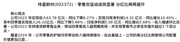 值得注意的是:2024年04月中信建投证券的任宏道分析师,首次发布关于伟星新材的研究报告,标题为:伟星新材(002372):零售攻坚战成效显著 分红比例再提升。