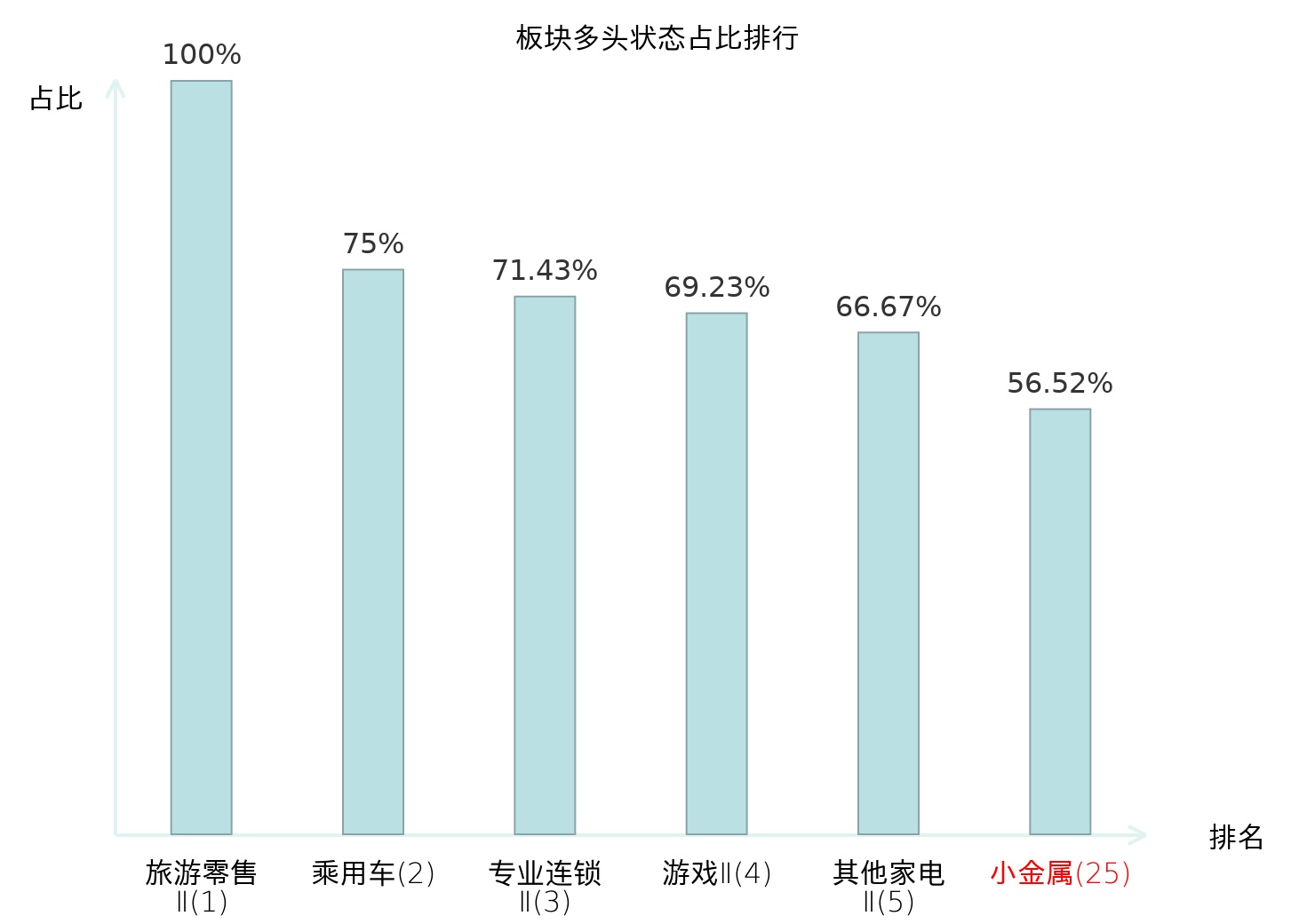 全市场所有行业板块中主力多头状态占比排名中,旅游零售Ⅱ板块位居第一。保险Ⅱ板块名次提升最快,较昨日上升82位。