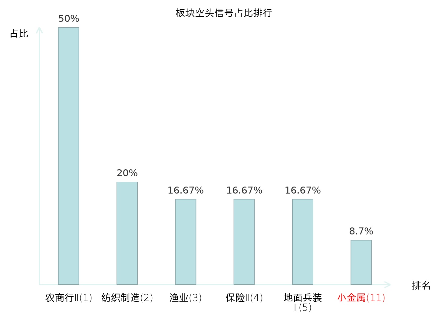 从主力宝信号数据分析,章源钨业所属的小金属板块中共有2只股票发出主力空头信号,主力空头信号占比在全行业中排名第11位,较昨日上升58位。排名上升表明主力对小金属板块的卖出意愿增强。全市场所有行业板块中,农商行Ⅱ板块的主力空头信号占比最高,位居第一。生物制品板块名次提升最快,较昨日上升121位。这些变动揭示了不同行业间主力资金动向的趋势,为投资者提供了关于市场情绪和潜在市场动态的重要参考。