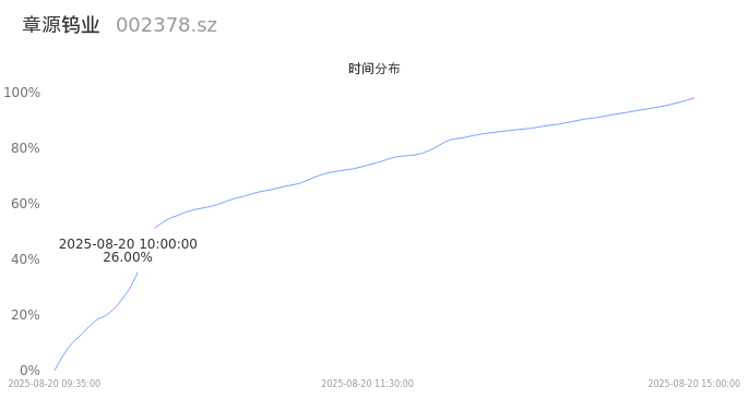002378章源钨业2025年08月20日成交99.02万手,成交金额10.45亿,相较昨日放量29.98万手,换手率8.29%,成交清淡。