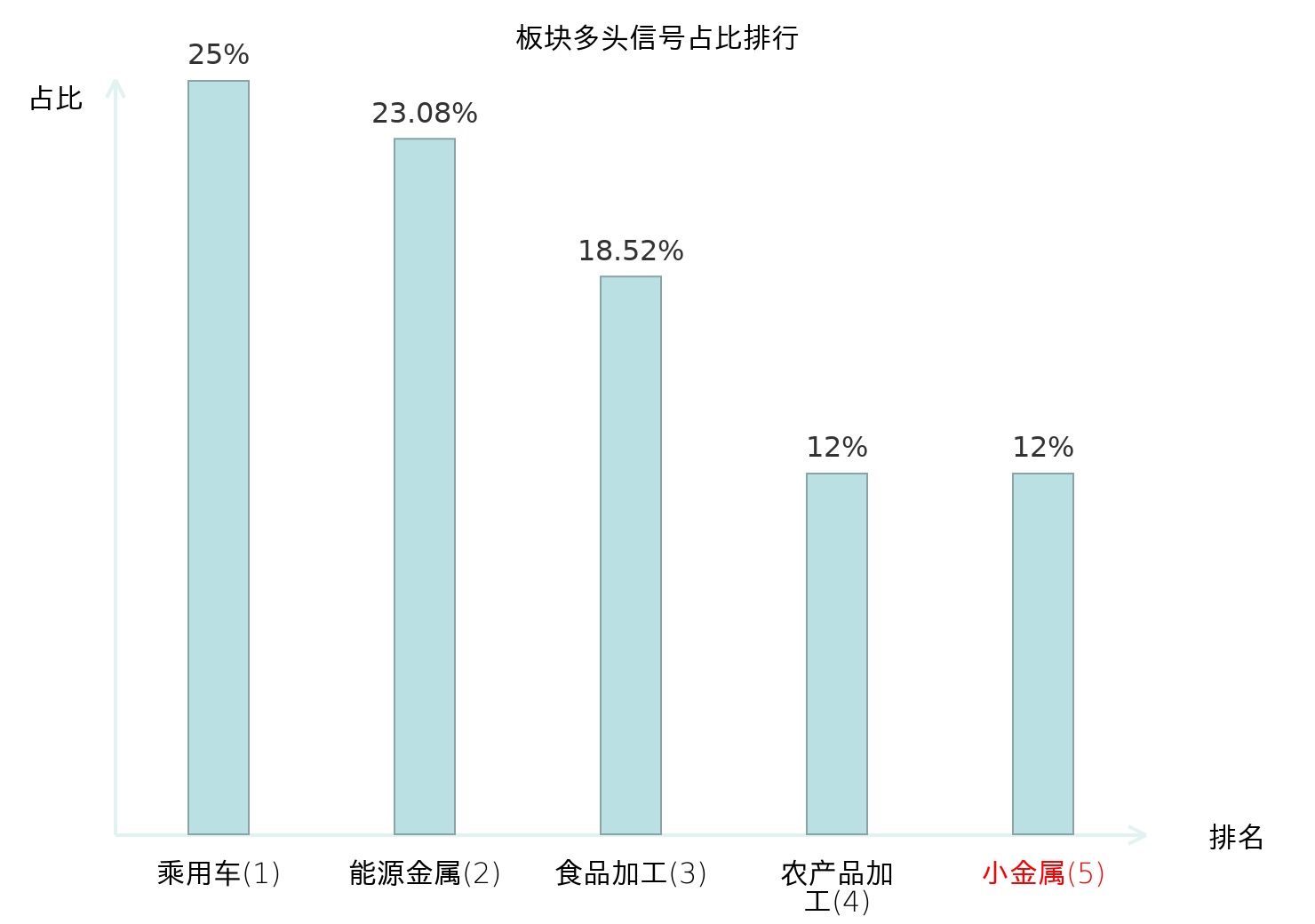 从主力宝信号数据分析,章源钨业所属的小金属板块中共3只股票发出主力多头信号,主力多头信号占比在全行业中排名第5位,较昨日上升71位。较高的排名表明主力对于该板块整体看多意愿较强,而此次排名的显著上升可能反映了主力对该板块态度的明显强化。全市场所有行业板块中主力多头信号占比排名中,乘用车板块位居第一;乘用车板块名次提升最快,较昨日上升120位。这些变动揭示了不同行业间主力资金动向的结构性变化,为投资者评估板块相对强度及潜在趋势提供了客观依据。