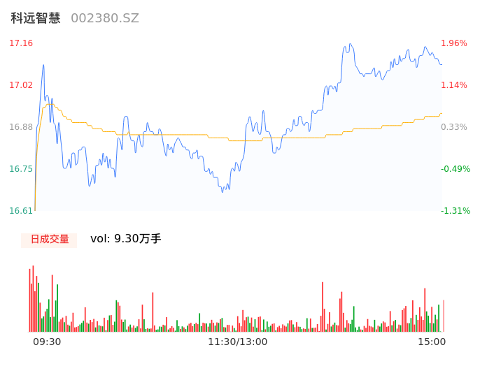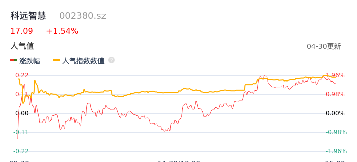 04月30日,科远智慧收报17.09,股价涨幅1.54%,成交金额1.57亿元,换手率6.56%。