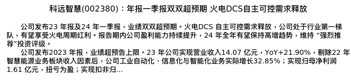 值得注意的是:2024年04月招商证券的刘玉萍/周翔宇分析师,首次发布关于科远智慧的研究报告,标题为:科远智慧(002380):年报一季报双双超预期 火电DCS自主可控需求释放。