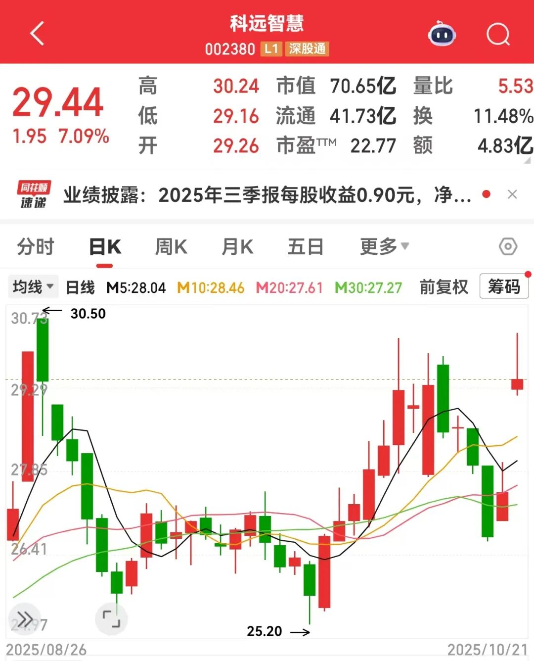 以科远智慧为例,公司今年前三季度实现净利润2.17亿元,同比增长36.87%;第三季度净利润为0.81亿元,环比增长8.47%,同样净利润连续2个季度环比提升。今日早盘,该股大幅高开,盘中一度触及涨停板。