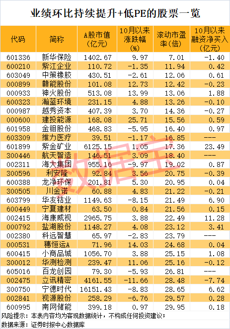 业绩持续环比提升股名单出炉