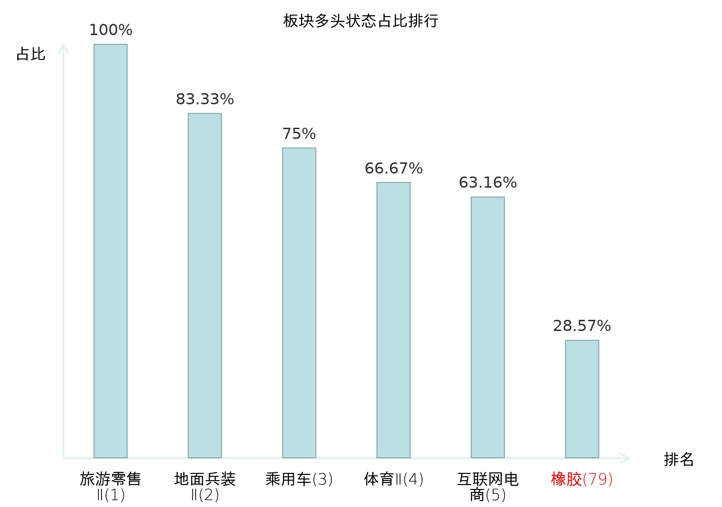 全市场所有行业板块中主力多头状态占比排名中,旅游零售Ⅱ板块位居第一。消费电子板块名次提升最快,较昨日上升52位。