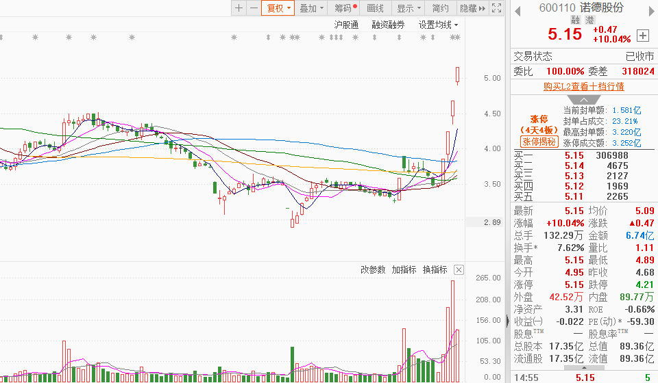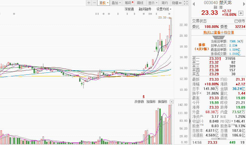 市场情绪:情绪持续低迷,市场热点较为杂乱,个股跌多涨少,全市场超3600只个股下跌。今日共44股涨停,连板股总数8只,12股封板未遂,封板率为78%(不含ST股、退市股)。焦点股方面,山东墨龙晋级6连板,固态电池概念股诺德股份走出4连板,楚天龙尾盘上演“地天板”录得3天2板。