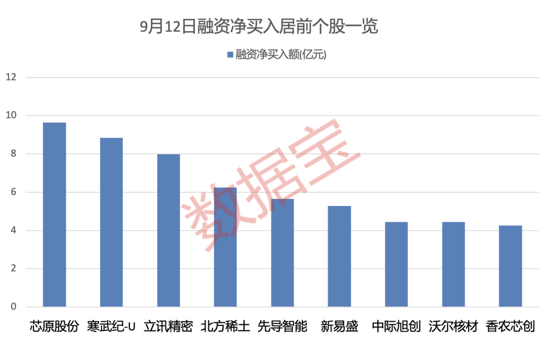 分行业统计,9月12日获融资客净买入均超1亿元个股中,电子、有色金属、银行等行业最为集中,分别有14股、8股、6股上榜。