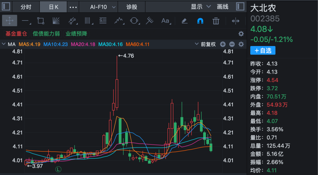 截至3月20日,大北农股价报收于4.08元/股。以此估算,其女儿邵某某继承的2.32亿股股票市值约9.46亿元。