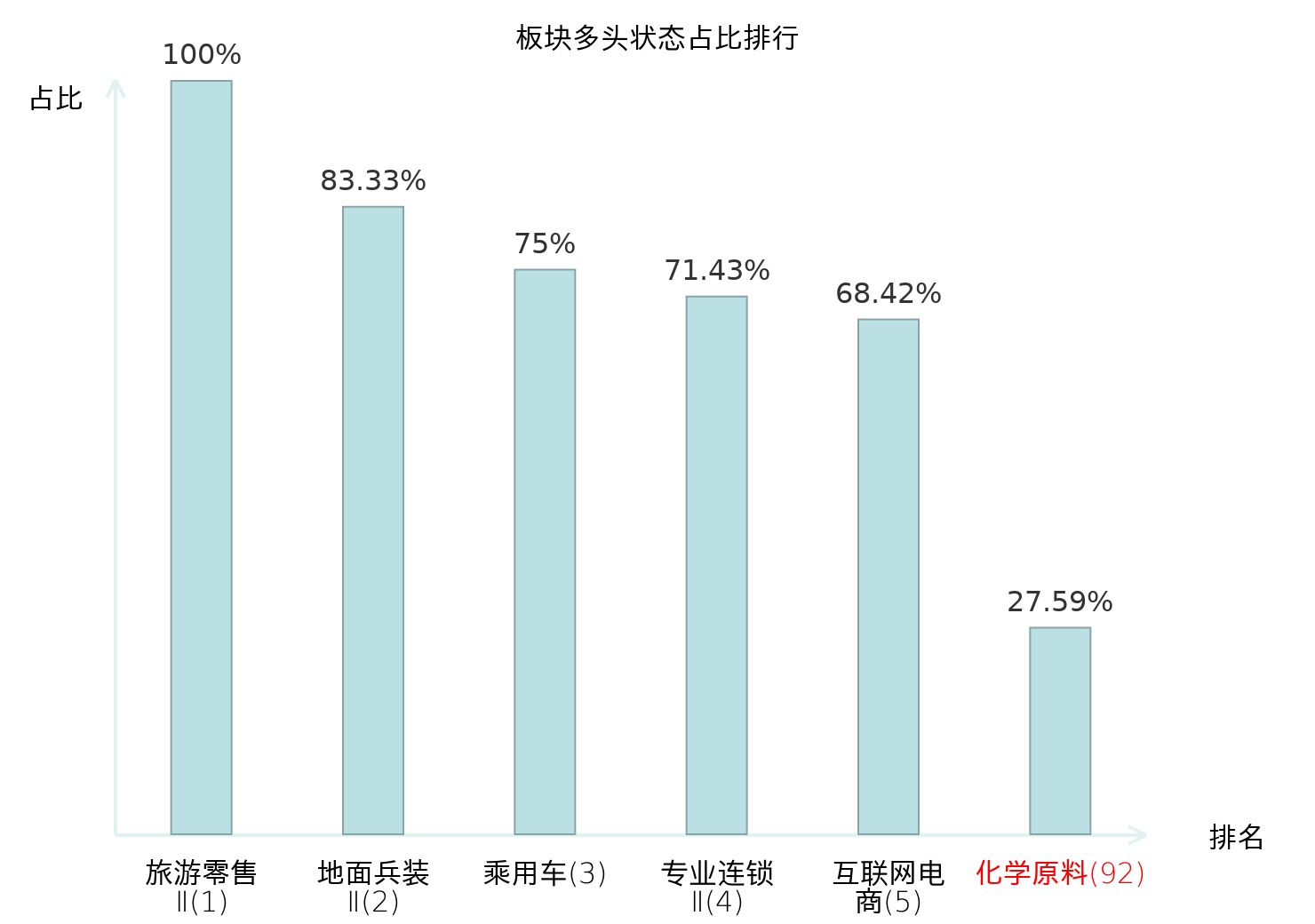从主力宝信号数据分析,天原股份所属的化学原料板块中共有16只股票处于主力多头状态,主力多头状态占比在全行业中排名第92位,较昨日上升9位。排名上升表明主力对该板块整体看多意愿有所增强。全市场所有行业板块中主力多头状态占比排名中,旅游零售Ⅱ板块位居第一;其他家电Ⅱ板块名次提升最快,较昨日上升55位。这些变动反映了主力资金在不同行业间的偏好调整,为投资者提供了观察市场趋势和主力态度的重要线索。