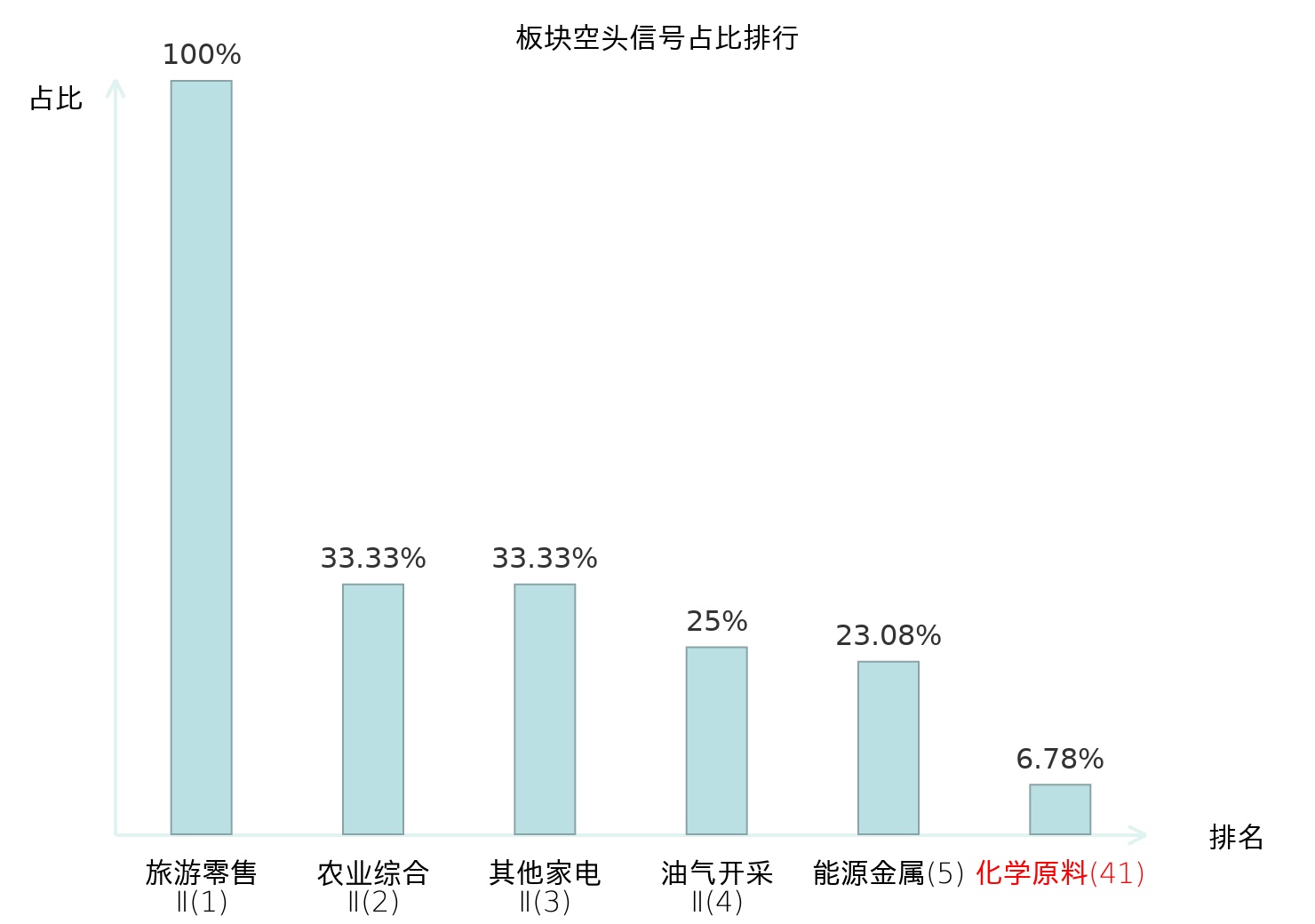 全市场所有行业板块中主力空头信号占比排名中,旅游零售Ⅱ板块位居第一。影视院线板块名次提升最快,较昨日上升105位。