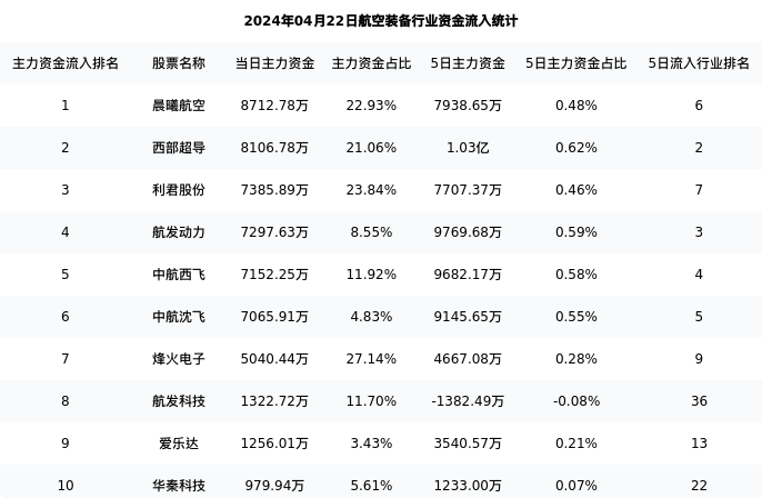 从主力资金流向来看,航空装备行业今日主力资金流入58.61亿元,在所有申万二级行业中排名:40/131。