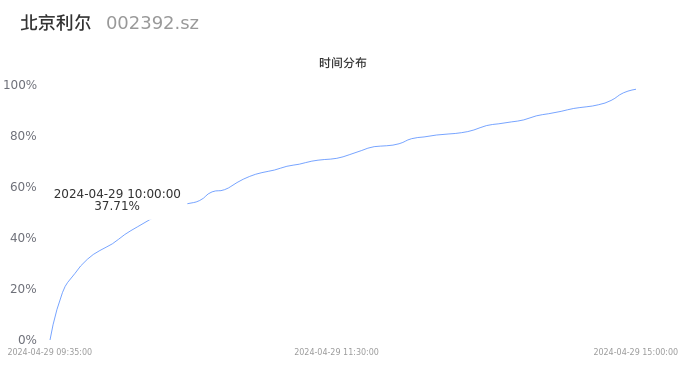 根据成交分布分析,该股票当天缩量成交,成交清淡。时间上看,早盘前半小时成交量占据当天总成交量的37.71%;价格上看,成交呈现中间峰。成交分布分析主要研究股票成交的分布特性,不具有预测功能,请知悉。